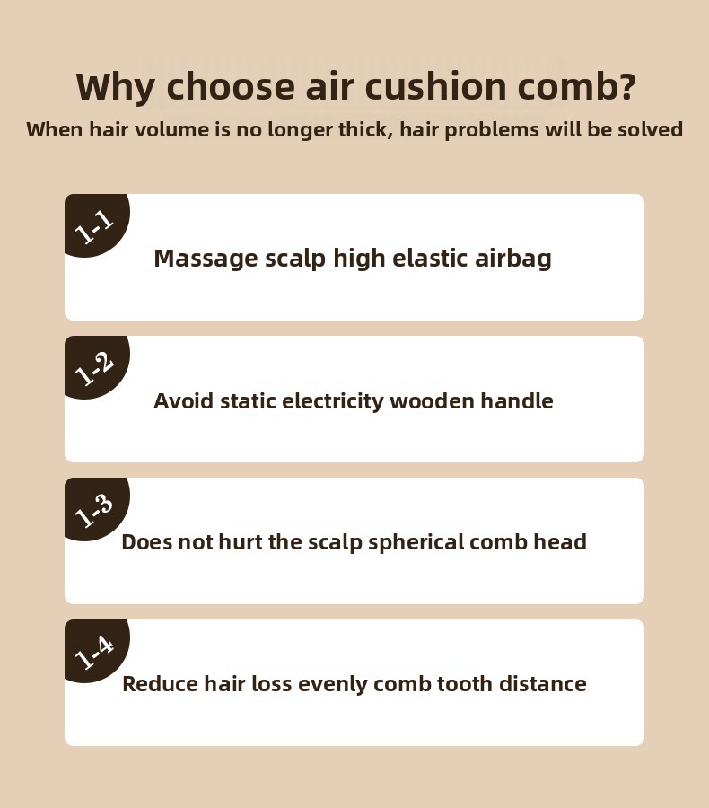 Air Cushion Design: Features a cushioned base for gentle combing and reduced hair breakage.